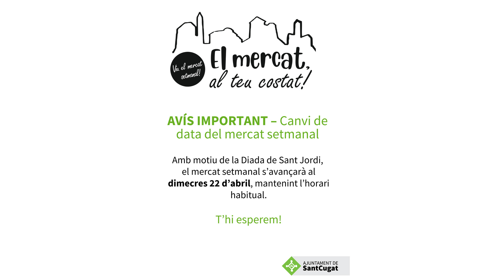 Amb motiu de la diada de Sant Jordi el mercat setmanal passa a celebrar-se el dimecres 22 d’abril.