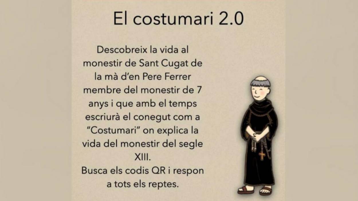 Un joc per a totes les famílies basat en un itinerari pel Claustre del Monestir i les sales del museu per tal de descobrir com hi vivien els monjos al segle XIII. Trobeu els punts amagats al mapa, escanegeu els codis QR secrets i resoleu els reptes en només una hora. Us hi atreviu? Un viatge al passat, amb la tecnologia del present!