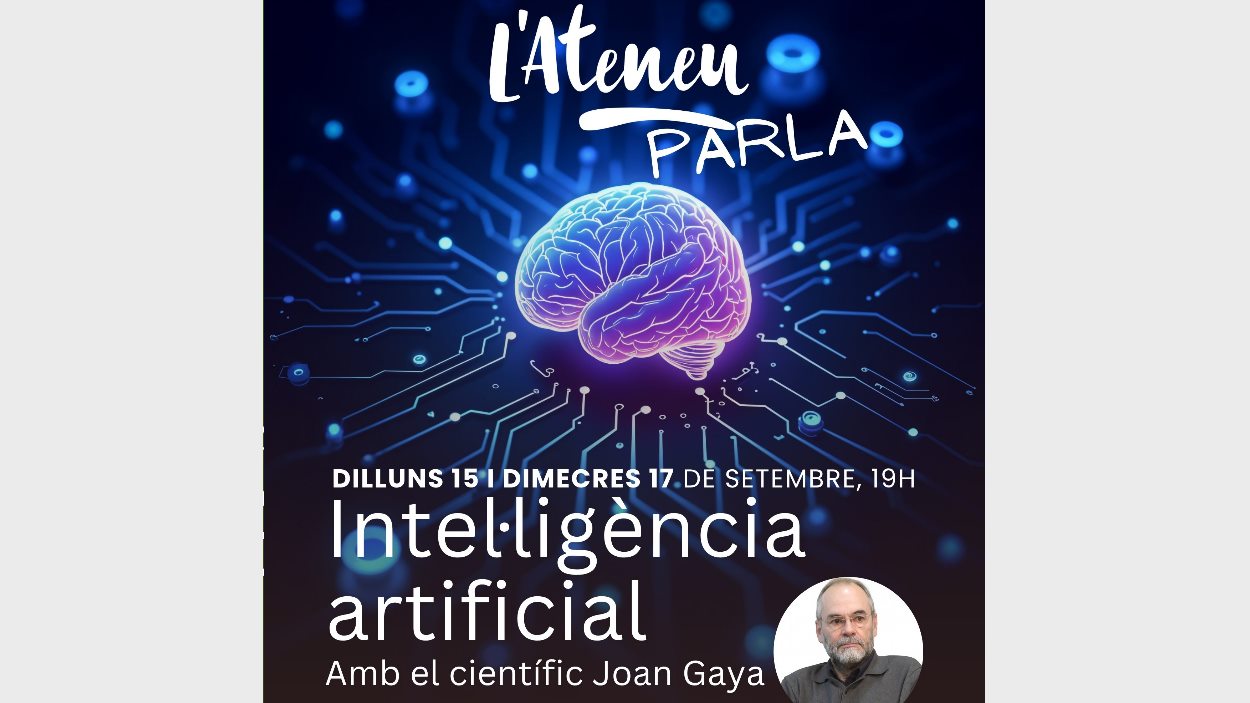 El cicle l’Ateneu Parla acull una doble sessió de xerrada i debat a càrrec del químic, bioquímic i informàtic Joan Gaya Beltran per parlar d’intel·ligència artificial. Què és? Com funciona? Aplicacions, exemples, reptes, expectatives, ètica, sostenibilitat, etc.