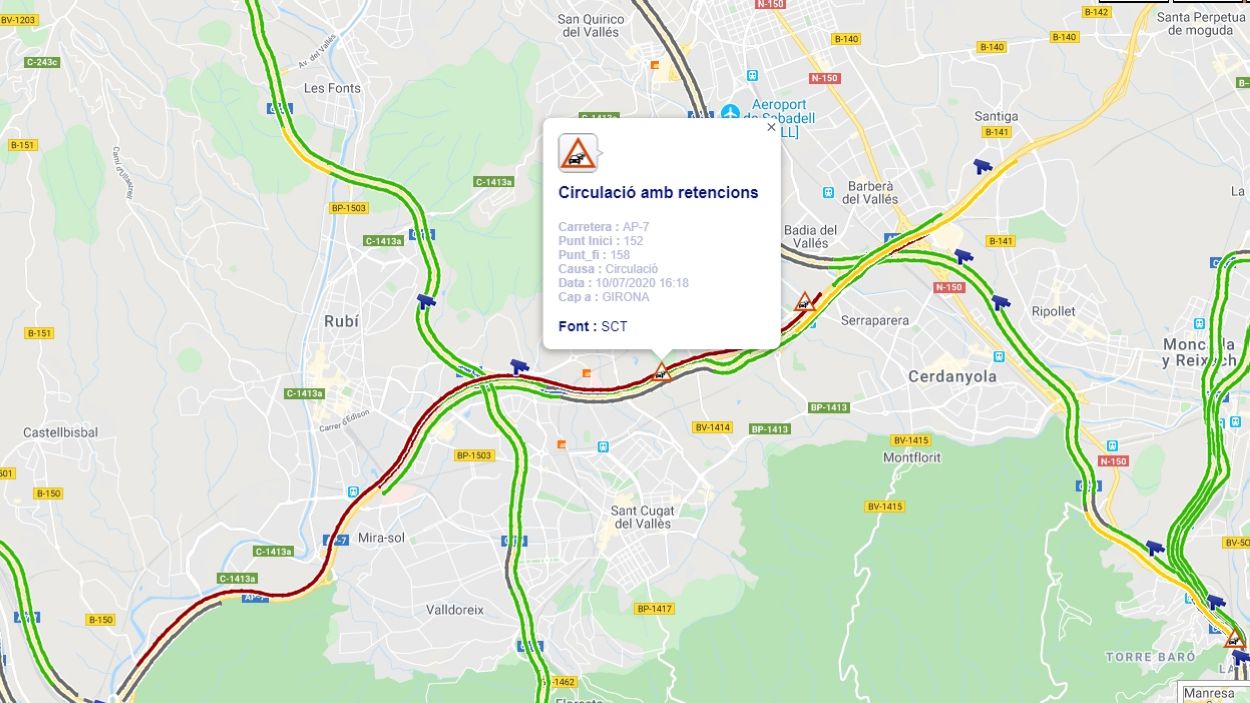 El carril de l’AP-7 tallat aquest dimarts al matí per un accident a l’alçada de Sant Cugat ja ha quedat obert, segons ha informat el Servei Català de Trànsit. L’incident s’ha produït passades les nou del matí i ha provocat retencions de fins a 3,5 quilòmetres en sentit nord, Girona.