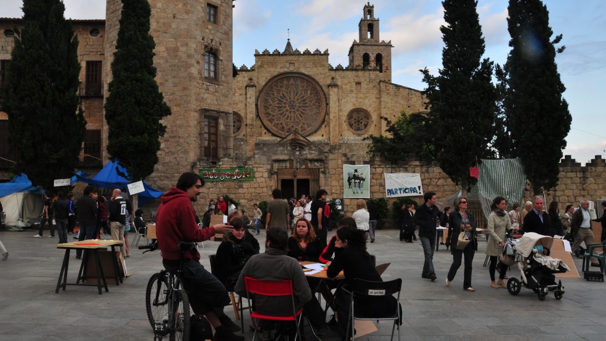 Els assistents a l’acampada es reunien en assemblea a la plaça d’Octavià / Foto: Pep Pujol