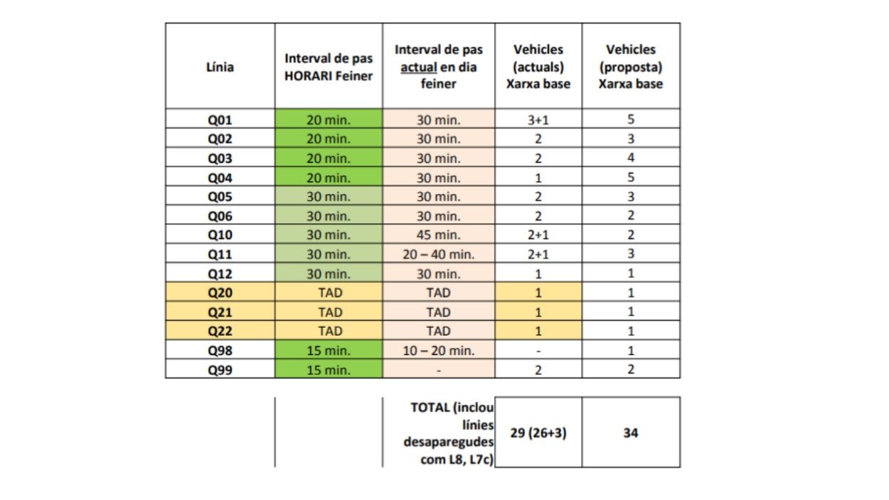 La proposta de freqüències de pas en comparació amb les actuals / Ajuntament