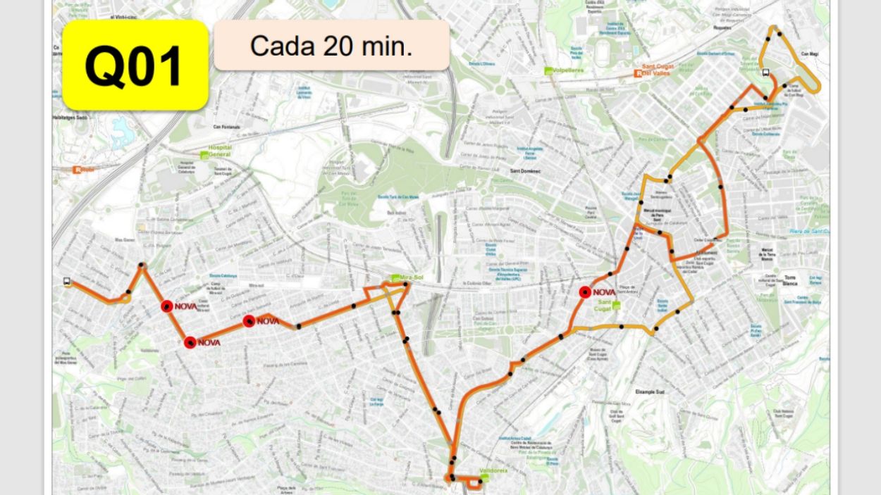 La proposta per a la línia Q01 que enllaça Can Magí amb Mas Gener / Ajuntament