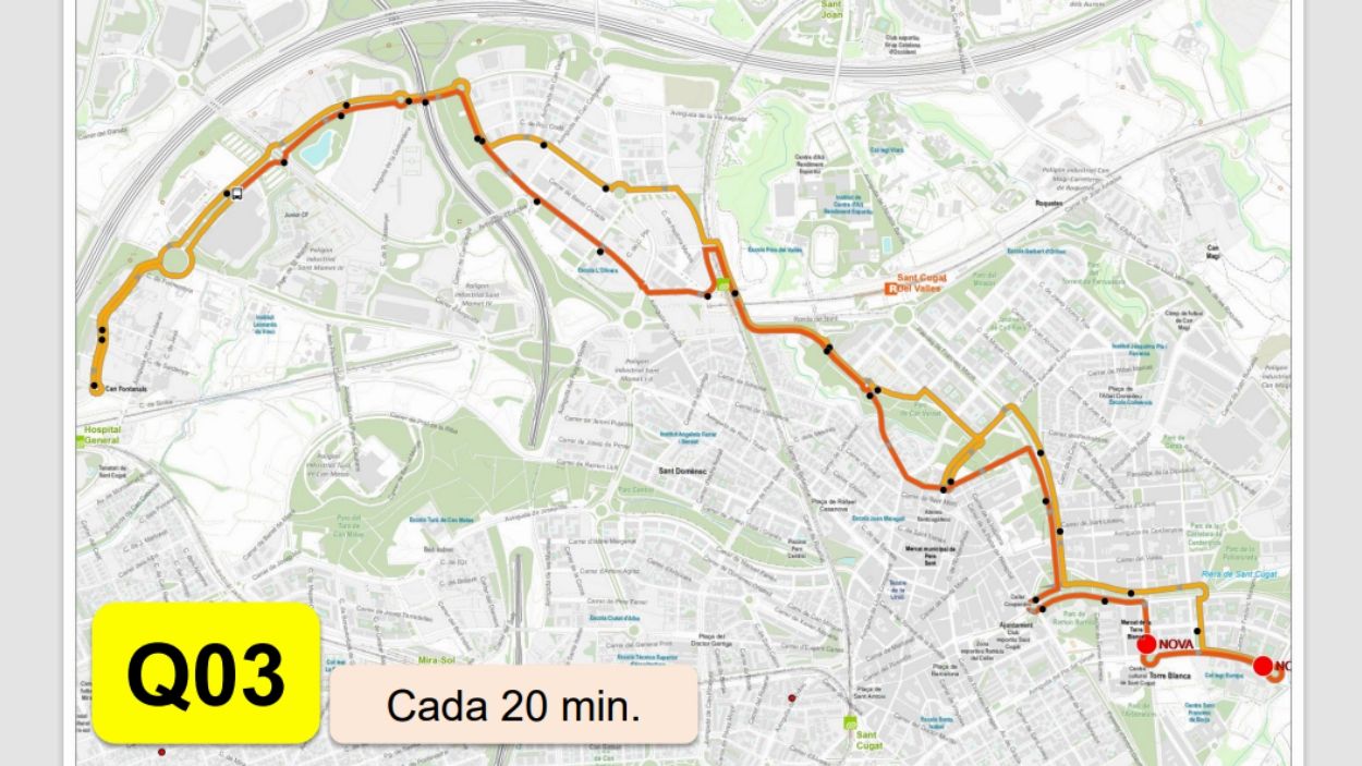 La proposta per a la línia Q03 que enllaça el Pla del Vinyet amb l’Hospital General / Ajuntament