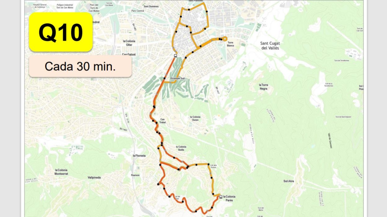 La proposta de línia Q10 que enllaça les Planes, La Floresta i l’estació dels FGC de Sant Cugat / Ajuntament