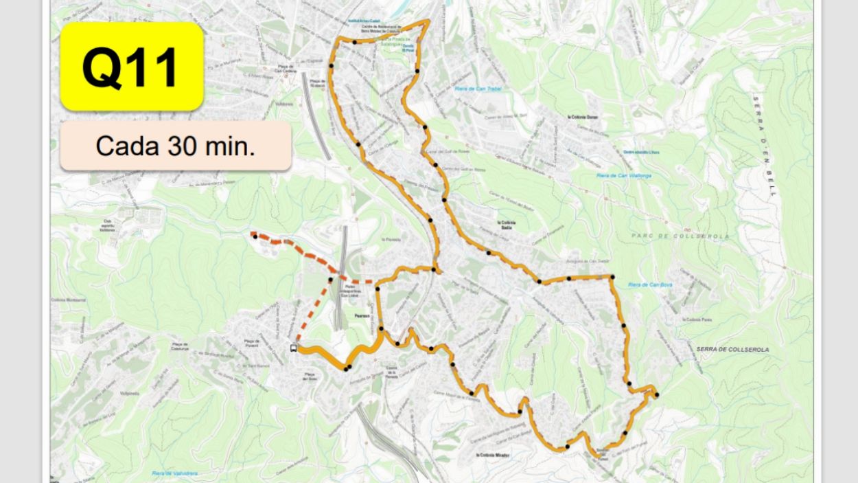 La proposta de línia Q11 que també enllaça les Planes, la Floresta i l’estació dels FGC de Sant Cugat / Ajuntament
