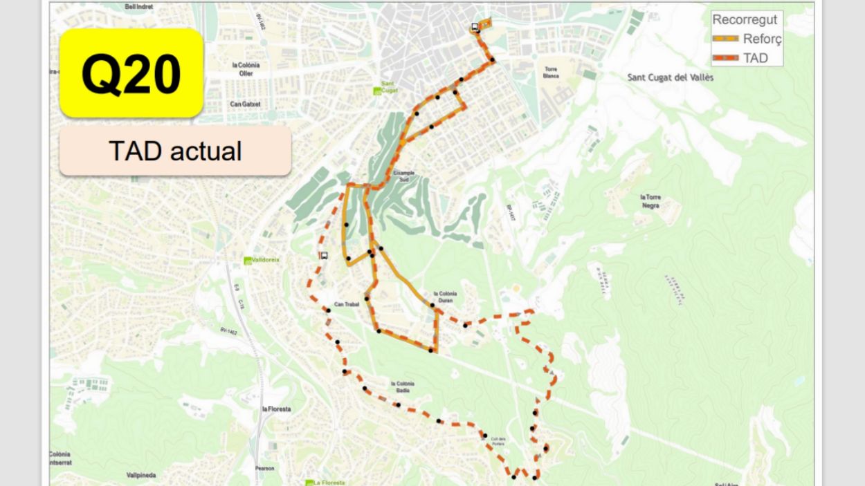 Aquesta és la línia actual de transport a demanda de les Planes es manté, però es dirà línia Q20 / Ajuntament