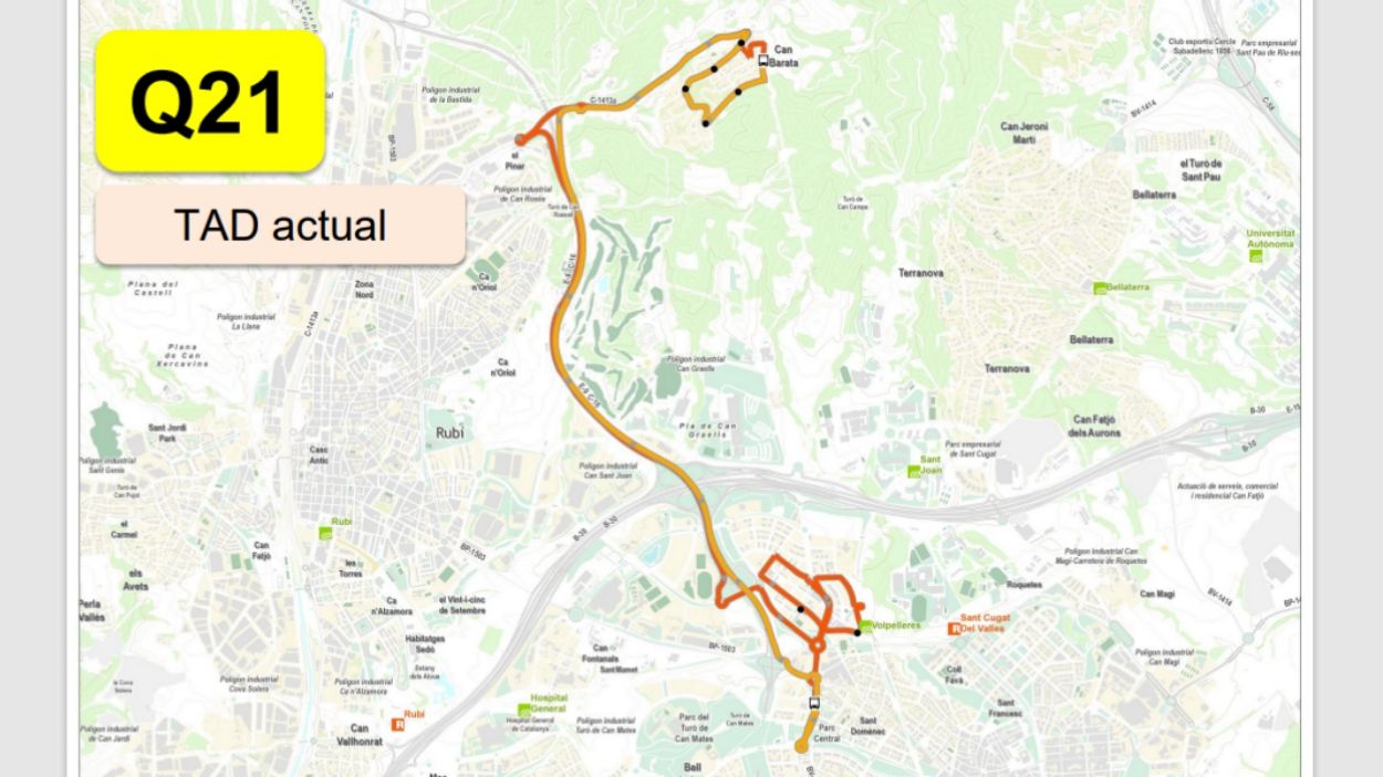 Aquesta és la línia actual de transport a demanda de Can Barata es manté, però es dirà línia Q21 / Ajuntament