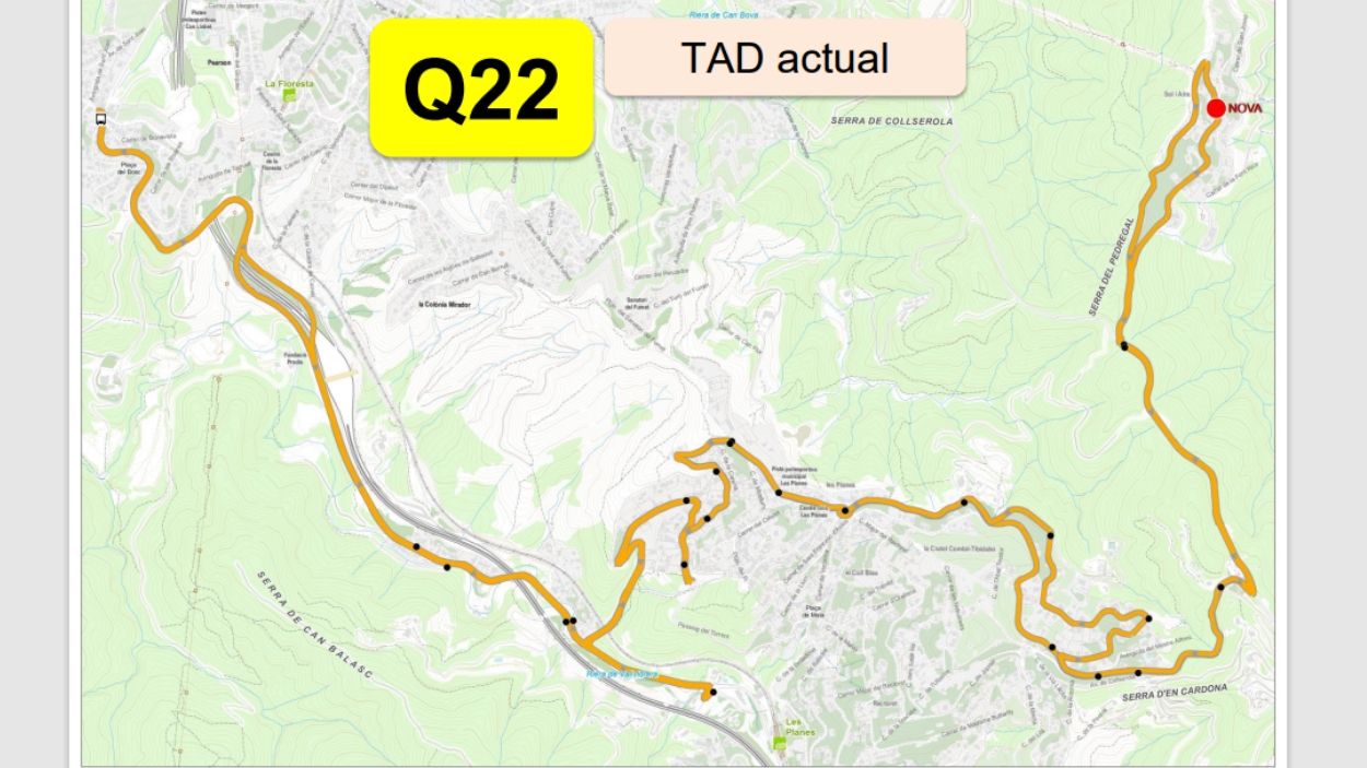 Aquesta és la línia actual de transport a demanda de Can Cortés, Can Borrull i Sol i Aire es manté, però es dirà línia Q22 / Ajuntament
