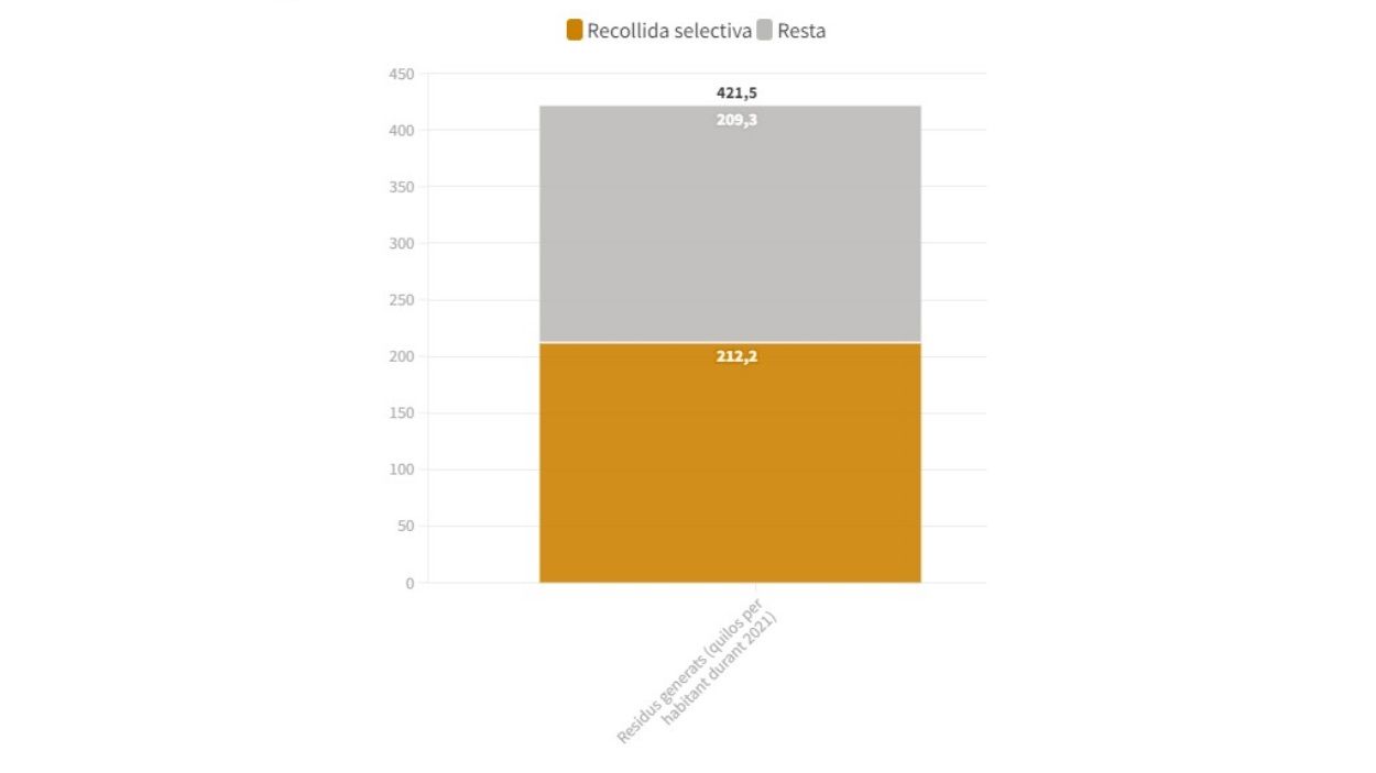 Sant Cugat és una de les vuit ciutats de l’Àrea Metropolitana de Barcelona (AMB) que assoleixen l’objectiu que la meitat dels residus generats siguin de recollida selectiva. Tot i això, encara no s’ha arribat a la fita del 55% marcada per al 2025 per l’administració supramunicipal. Són dades de l”Informe ambiental de residus 2021′, que ha presentat aquest dimarts l’AMB i que recull que cada santcugatenc genera cada any 421,5 quilos de residus (1,2 al dia); són 12,3 quilos menys respecte a la mitjana de 2020. En el conjunt dels municipis metropolitans, l’any passat es van recollir 1,4 milions de tones de residus, dels quals es van recollir selectivament un 38,1%.
