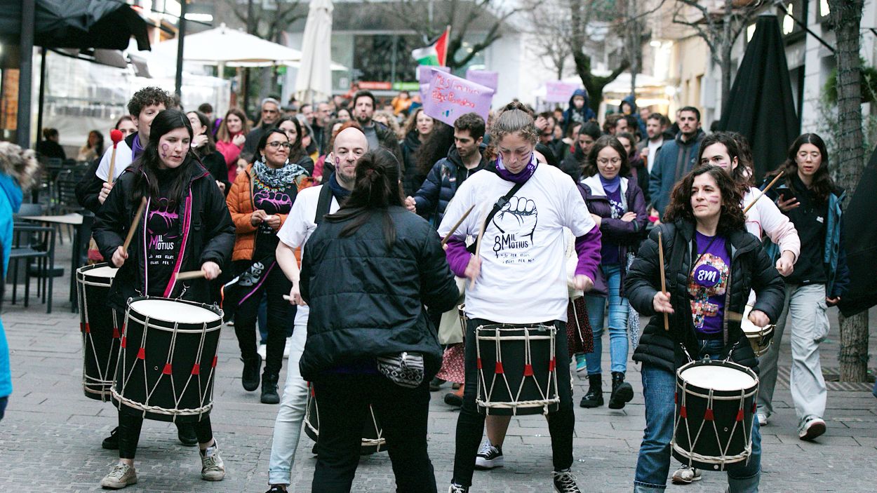 La manifestació ha transcorregut en un ambient on les botigues de l’eix comercial han obert amb normalitat. En aquesta ocasió, a diferència d’altres anys, no s’han enganxat cartells ni als locals d’estètica ni a les immobiliàries. En canvi, les cartellades han trobat com a diana els locals buits del centre. Tot plegat ha estat en un ambient festiu, a ritme de batucada i amb càntics i proclames com “El masclisme es terrorisme” i “No som histèriques, som històriques”.