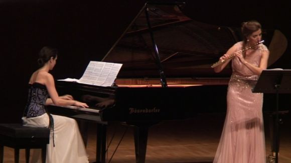 L’elegància de Cristina Casale i Patrícia de No ha deixat captivats des del primer minut els espectadors del Teatre-Auditori. Les artistes santcugatenques, que han traspassat fronteres amb la seva música, han començat amb una primera part més íntima i sensual amb peces de Ravel, Poulenc i Debussy, que s’han pogut escoltar amb flauta i piano. Abans de tocar cada una de les peces, i amb la pedagogia amb la qual entenen la música, les dues intèrprets han anat explicant al públic la història i detalls de cada un dels autors. Casale i de No han explicat a Cugat.cat que aquesta és la seva manera de comunicar-se amb la música, però també amb el públic.