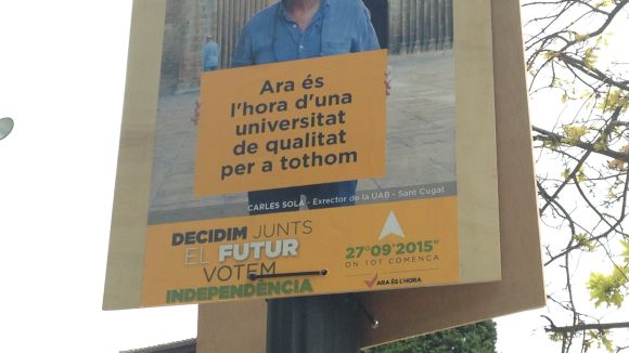 L’agrupació local de Ciutadans denuncia que s’hagin penjat pancartes a Sant Cugat a favor de la independència ‘abans d’hora’ i que això influeix directament a la intenció de vot de cara a les properes eleccions del 27 de setembre. Cs argumenta que la Junta Electoral no ha donat per començada la campanya electoral i que, per tant, ‘no hauria d’haver-hi cap símbol polític en zones públiques’.