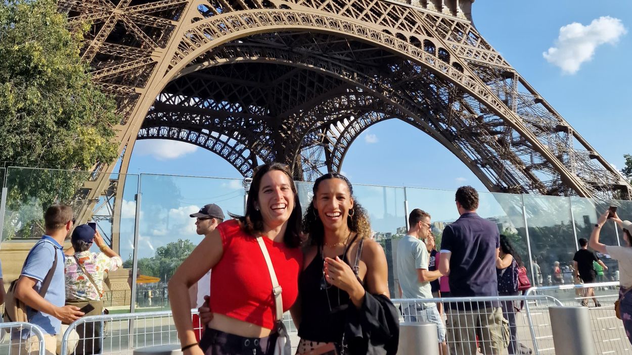 Cora Salas amb l’Ella Bestué als peus de la Torre Eiffel / Cedida