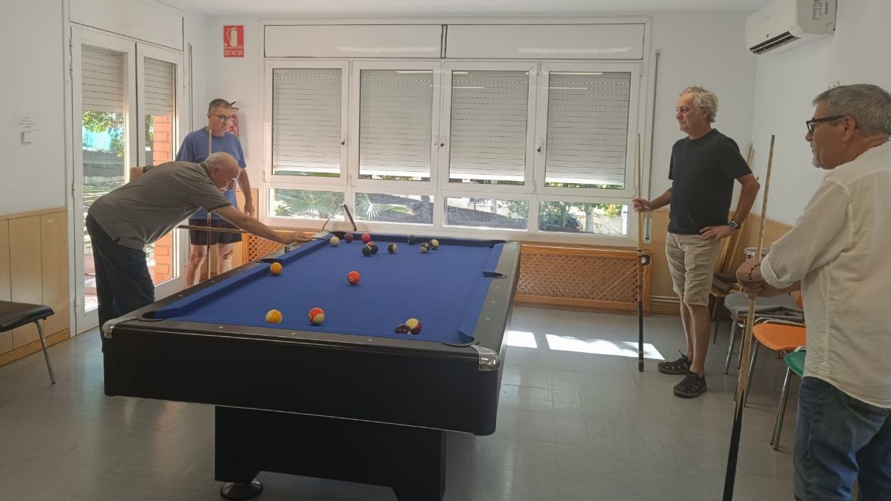 Un grup de socis del Casal de la Gent Gran de Valldoreix jugant al billar que hi ha a les instal·lacions de l’entitat / Cugat Mèdia