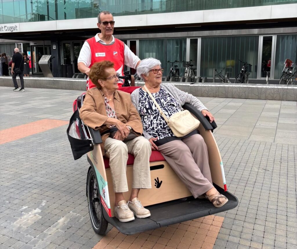 El projecte ‘En bici sense edat’ suma un nou tricicle. Amb aquest, ja són dos els vehicles que es podran utilitzar perquè la gent gran i persones amb mobilitat reduïda puguin gaudir d’un passeig amb aquest transport. Es tracta d’un projecte internacional que va néixer a Dinamarca el 2012 i que va arribar a Sant Cugat deu anys després, el 2022, a càrrec de la Unió Ciclista. L’any 2024 van utilitzar el servei 258 usuaris, dels quals, 200, van ser dones. Una d’elles és Palmira Collado, que durant l’acte de presentació del nou tricicle, aquest dilluns, ha explicat que en gaudeix molt, i ha agraït la iniciativa a tots els qui ho fan possible. La seva intenció és la de continuar fent ús del servei.