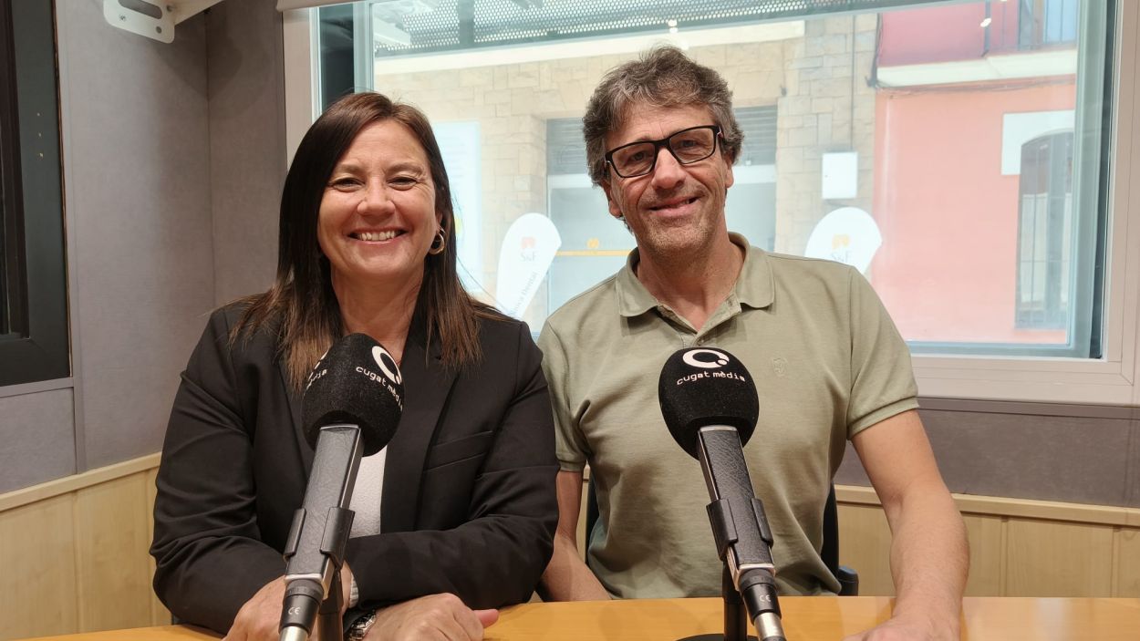 Maria Farriol, directora del Teatre-Auditori, i Marc Urquizu, cap tècnic de l’equipament a l’estudi Ramon Barnils de Ràdio Sant Cugat / Cugat Mèdia