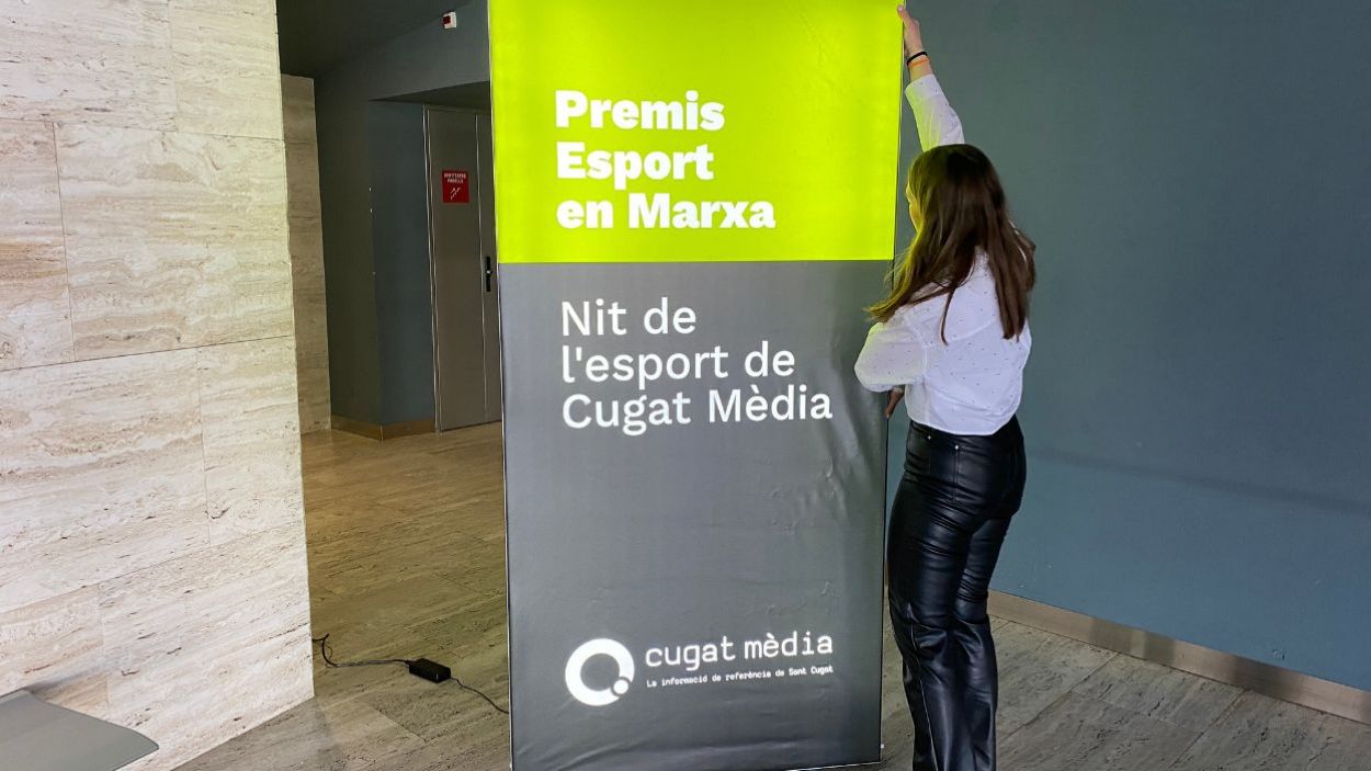 Col·locació dels vinils dels ‘Premis Esport en Marxa’ / Cugat Mèdia