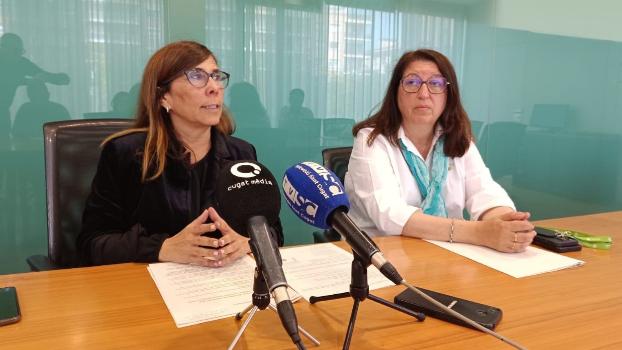 La tinenta d’alcaldia de Gestió Urbana i Canvi Climàtic, Cristina Paraira; i la regidora d’Educació, Carme Ardid, durant la presentació del Pla de Confort Climàtic / Cugat Mèdia