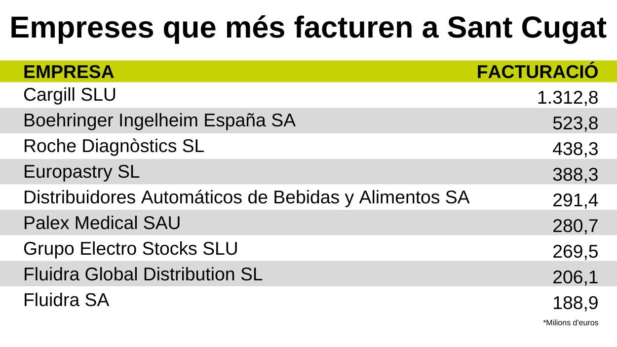 Les empreses de Sant Cugat que més facturen / Font: Diputació de Barcelona / Cugat Mèdia