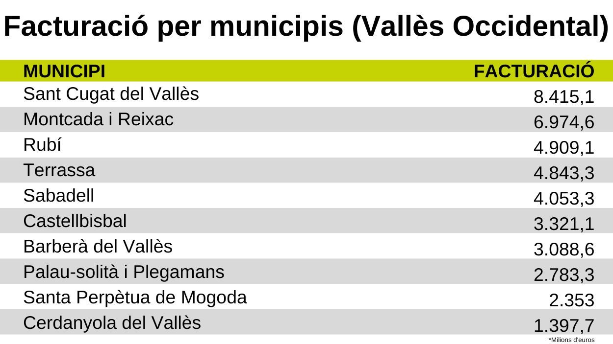 Rànquing dels municipis del Vallès Occidental que més facturen / Font: Diputació de Barcelona / Cugat Mèdia