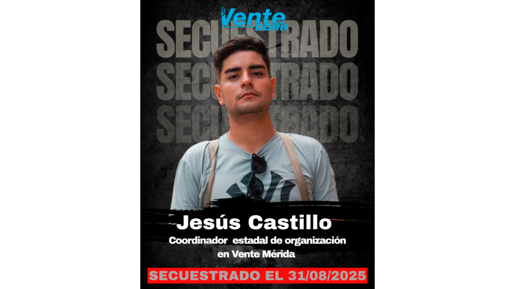 Jesús Castillo, nuestro Coordinador de Organización de Vente Mérida, fue secuestrado ayer por el régimen de Nicolás Maduro.