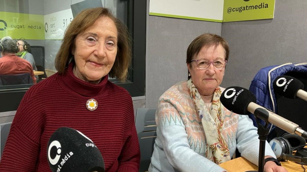 Elvira Anglès (esquerra) presidenta de l’entitat Sardanista de Sant Cugat, banderers d’enguany de la festa de Sant Antoni; i Rosa Díaz, secretària de la Comissió de Festes de Sant Antoni Abat, durant l’entrevista a Ràdio Sant Cugat / Cugat Mèdia