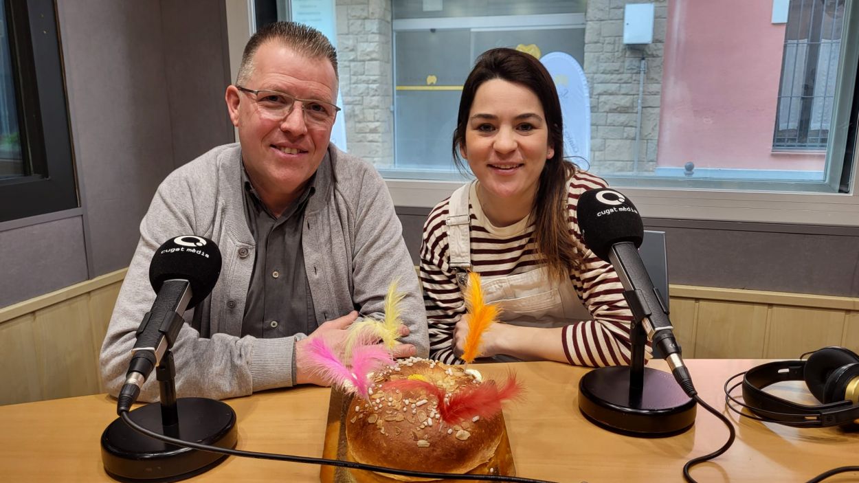 Carles Boix, de la pastisseria La Palma i Maria Agustí, de la pastisseria Milfulls, a l’estudi Ramon Barnils de Ràdio Sant Cugat / Cugat Mèdia