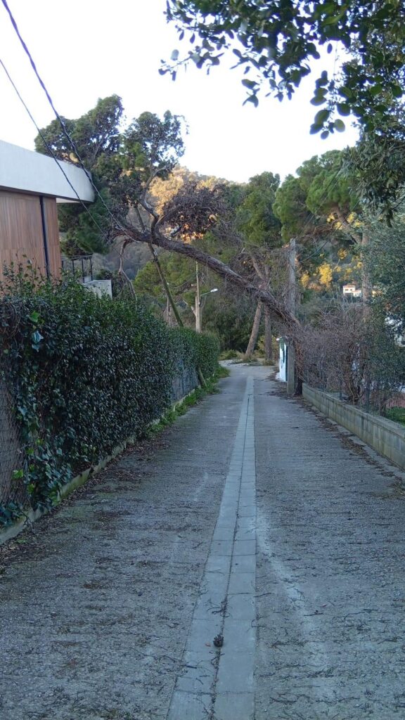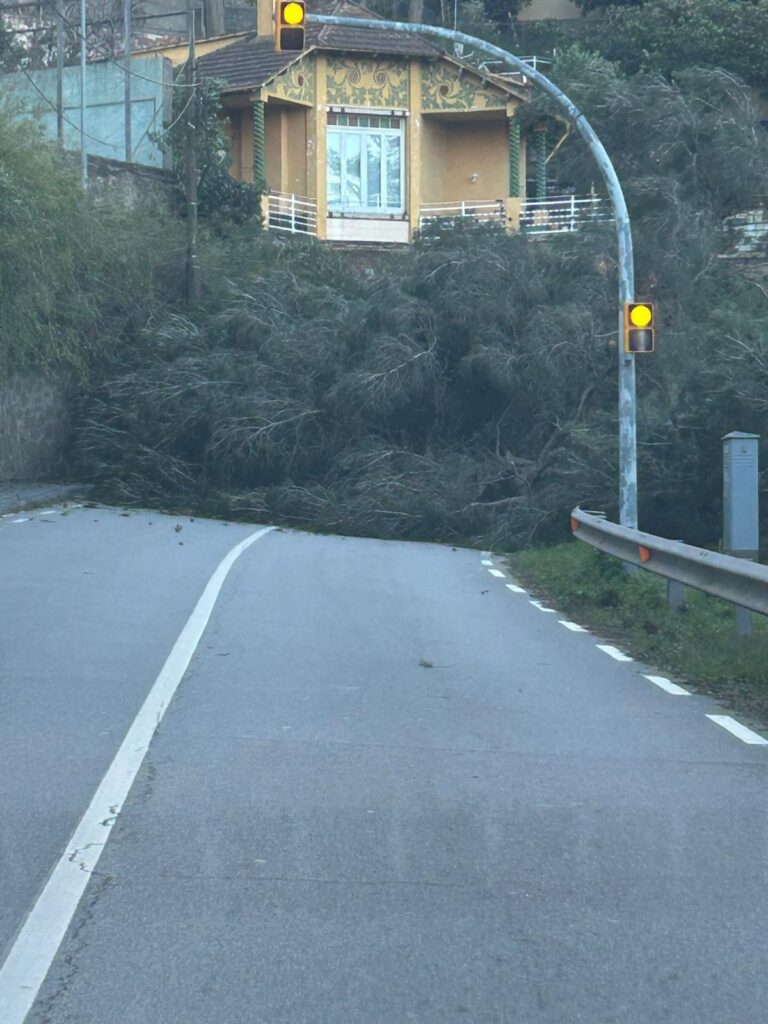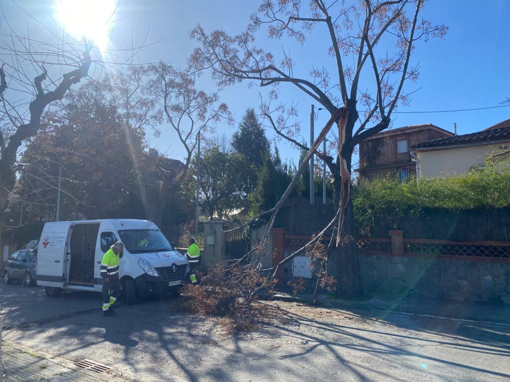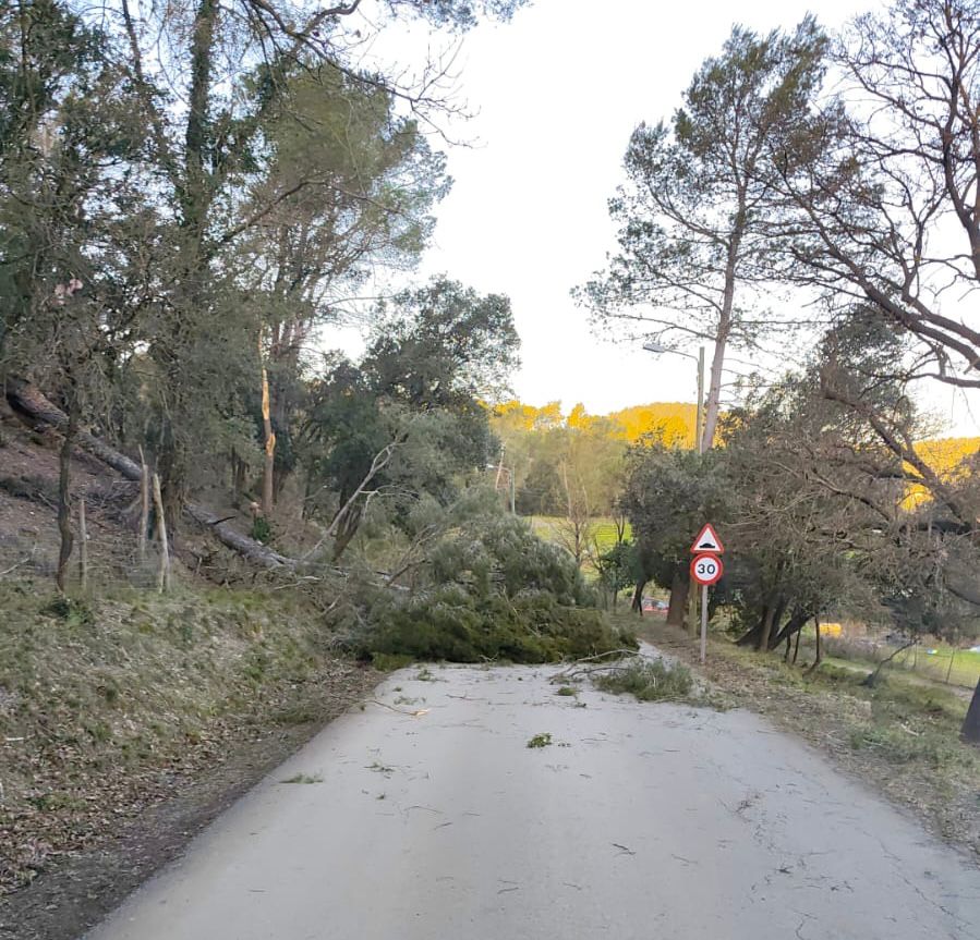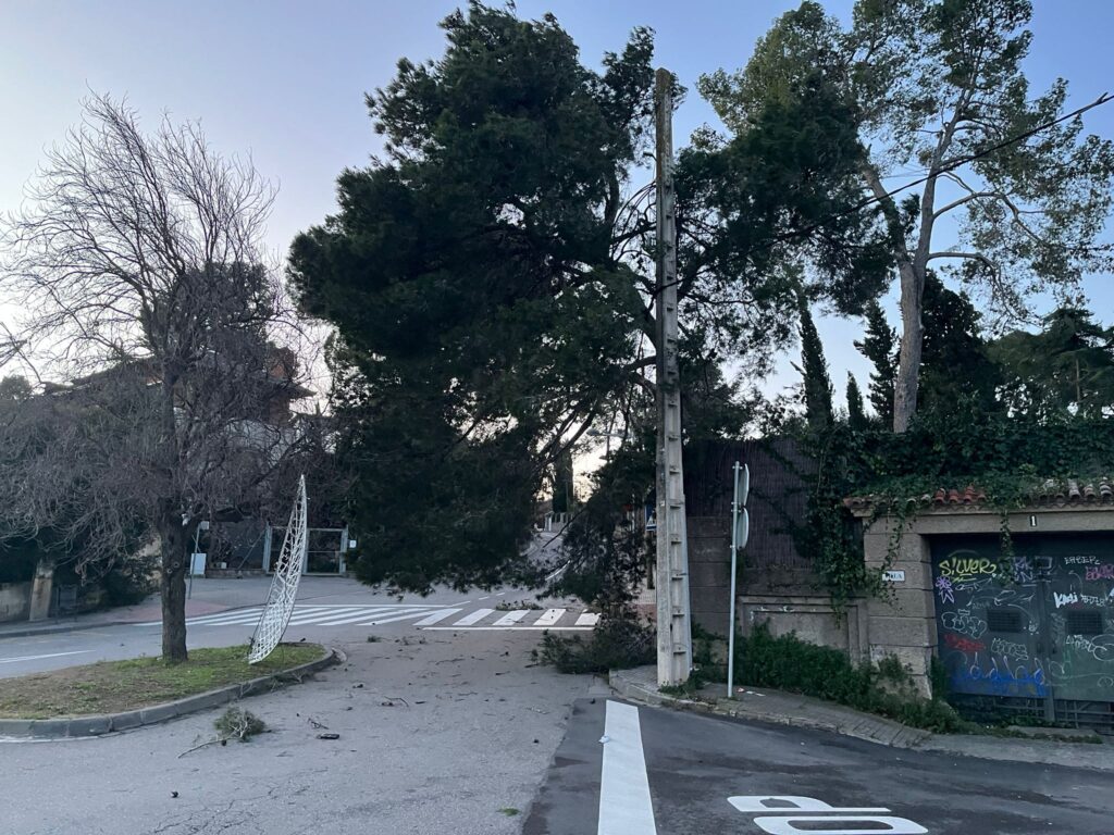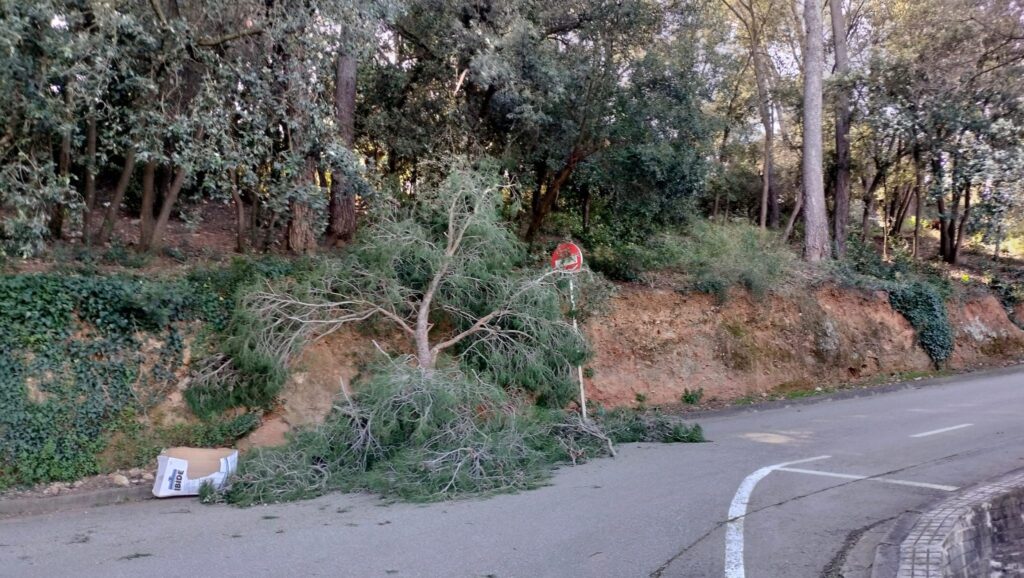 Branques d’arbre caigudes a la carretera a causa del vent a Valldoreix / Foto: EMD Valldoreix