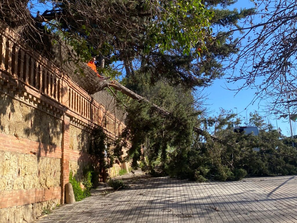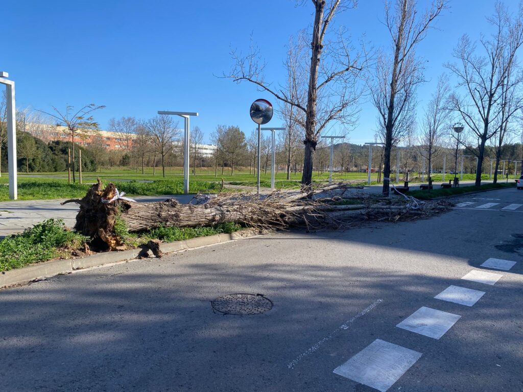 Un altre arbre partit pel vent a l’entorn de l’Arxiu Nacional / Foto: Cugat Mèdia