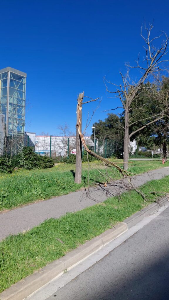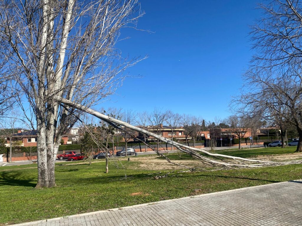 Branca trencada a causa del vent davant de l’institut Arnau Cadell / Foto: Cugat Mèdia