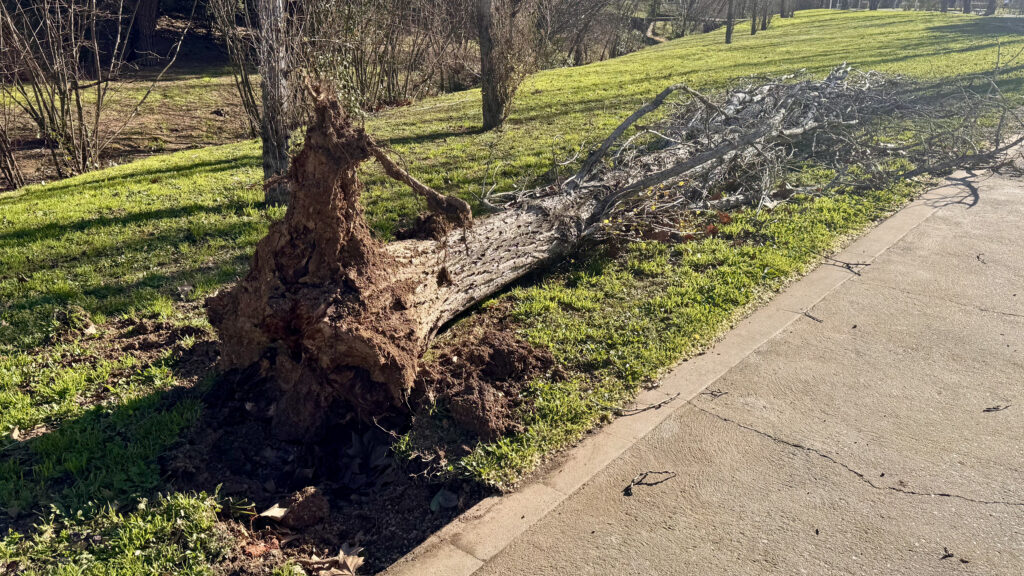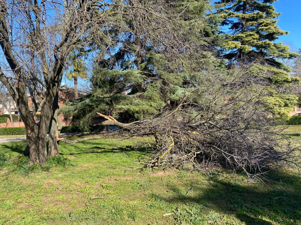 Arbre partit pel vent al parc de l’Arxiu Nacional / Foto: Cugat Mèdia