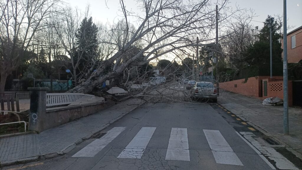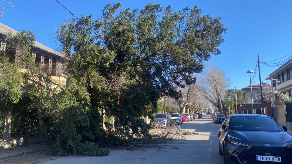 Arbre barrant el pas a l’avinguda de Can Trabal, al Mar de la Xina / Foto: Ajuntament de Sant Cugat