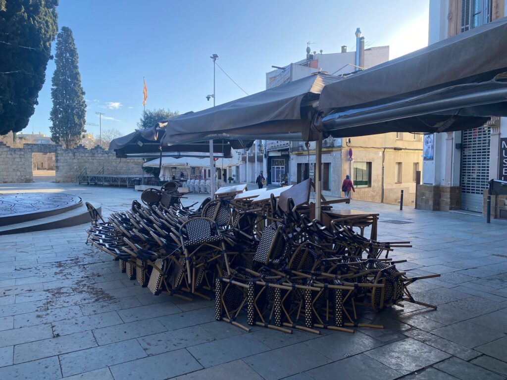 Cadires caigudes a la plaça d’Octavià / Foto: Cugat Mèdia