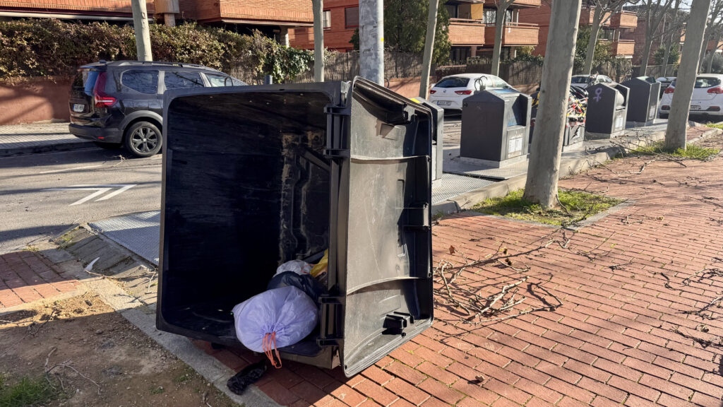Contenidor tombat per l’efecte del vent / Foto: Cugat Mèdia