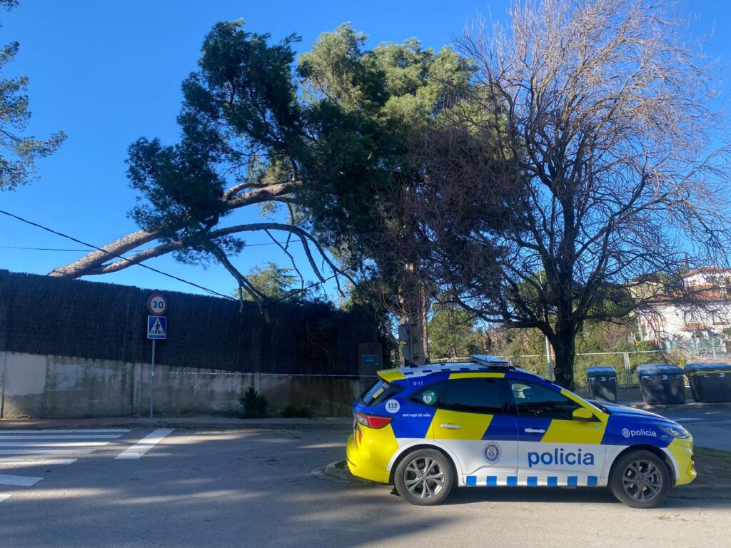 Arbre caigut i cotxe de la Policia a la Floresta / Foto: Cugat Mèdia