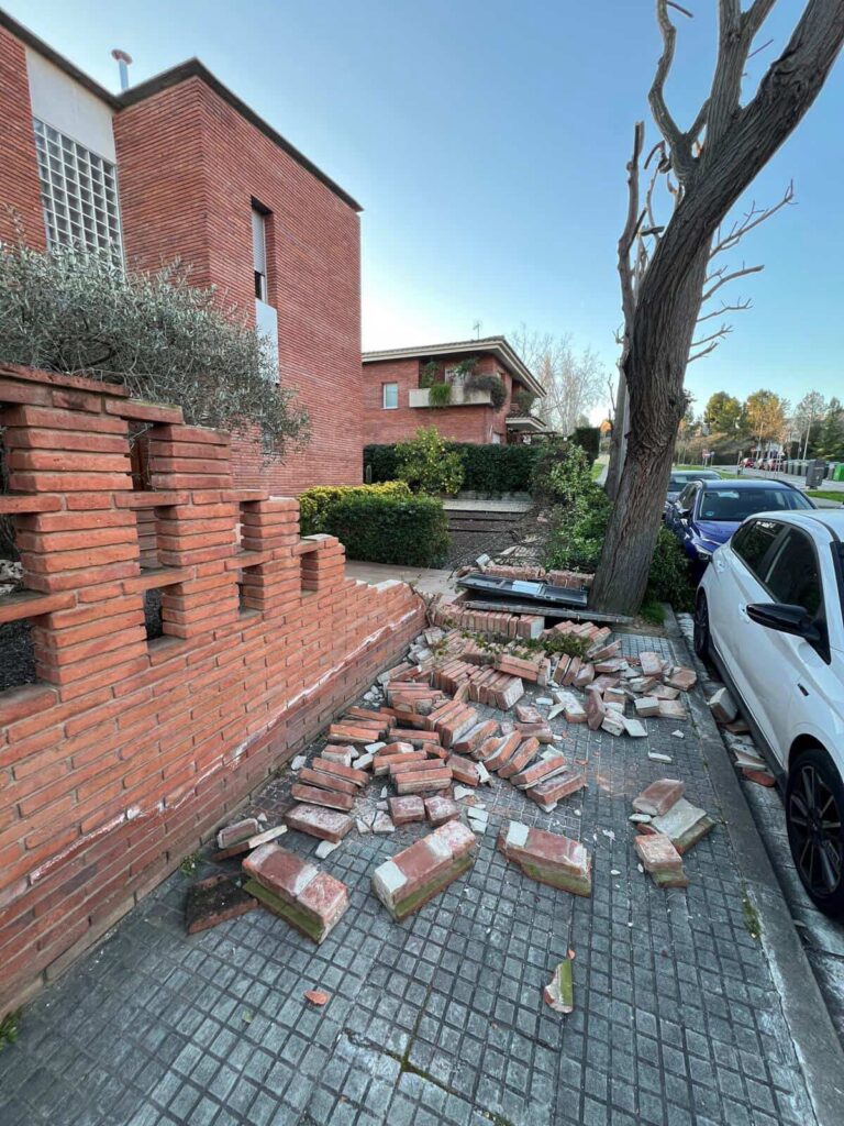 Una tanca d’una casa caiguda provocada pel vent / Foto: Cugat Mèdia