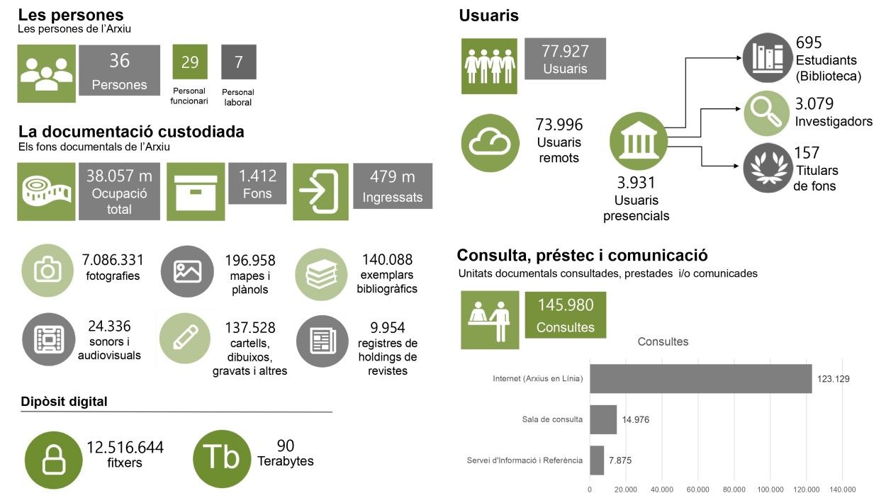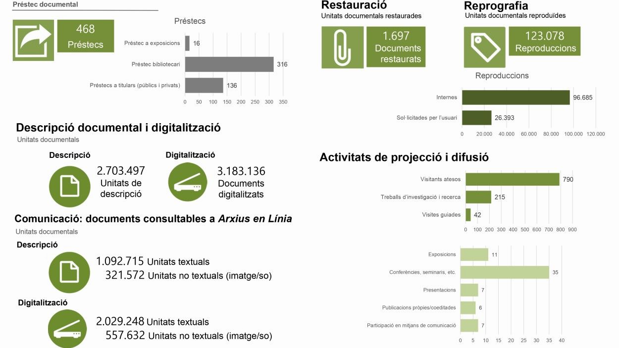 A més, el Departament de Cultura ha facilitat dades de 2022 que reflecteixen la feina que es fa des de l’Arxiu Nacional de Catalunya.