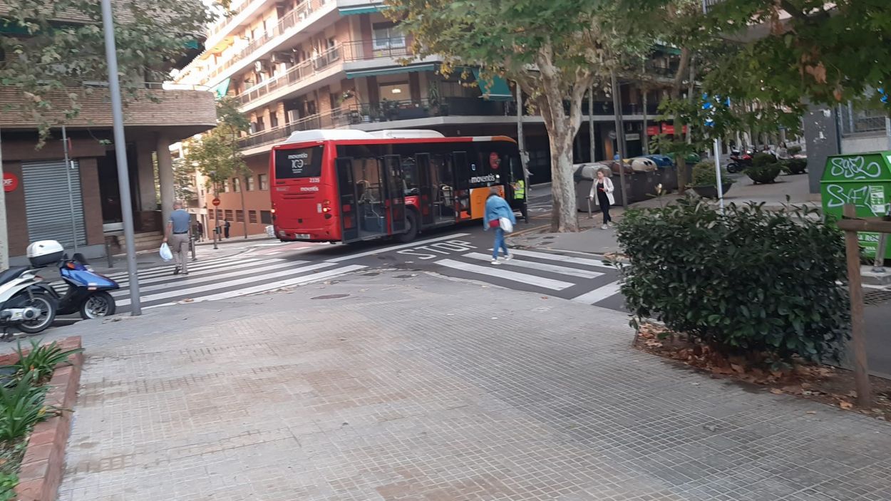 Autobús avariat a l’avinguda Lluís Companys amb el carrer Torrent de la Bomba / Cugat Mèdia