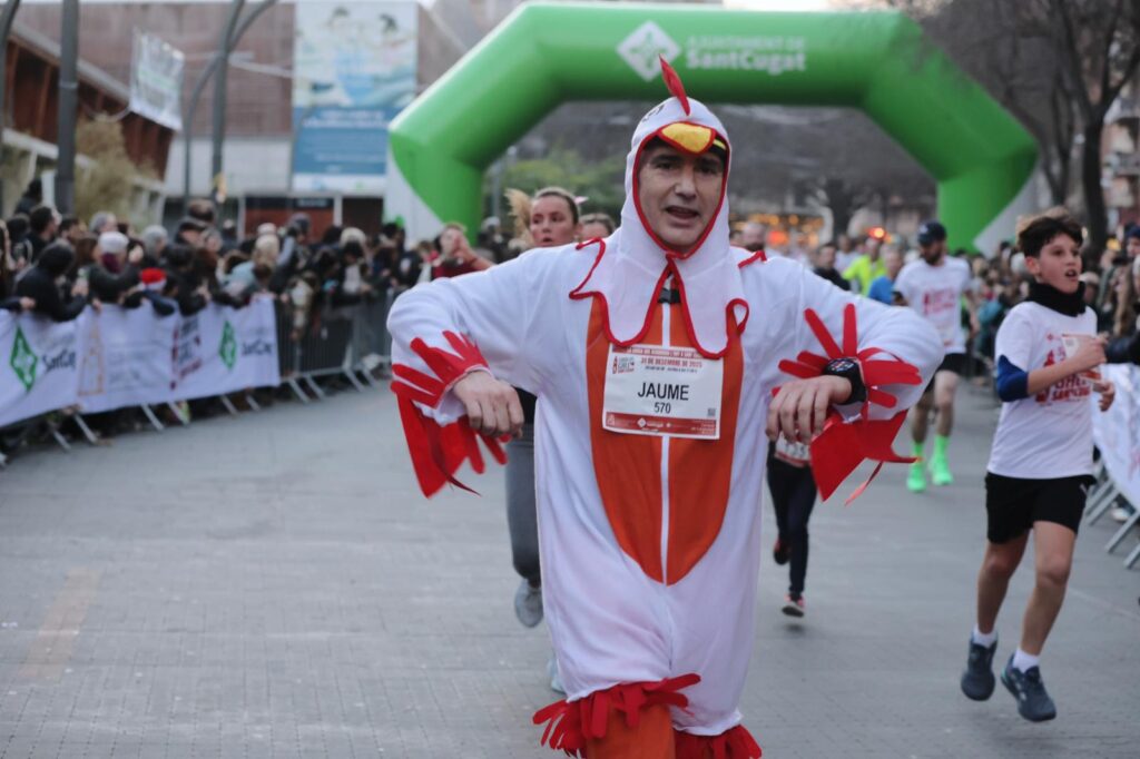 La 5a edició de la Cursa del Gall, organitzada per l’Ajuntament i el Club Muntanyenc, ha omplert els carrers de galls i gallines i de moltes disfresses. Moments de compartir un acte esportiu que amb 1.500 atletes ha demostrat el bon estat de forma de la ciutat. Famílies, amics i amigues i sobretot molta originalitat a l’hora de vestir-se per gaudir del darrer acte de 2025 a Sant Cugat.