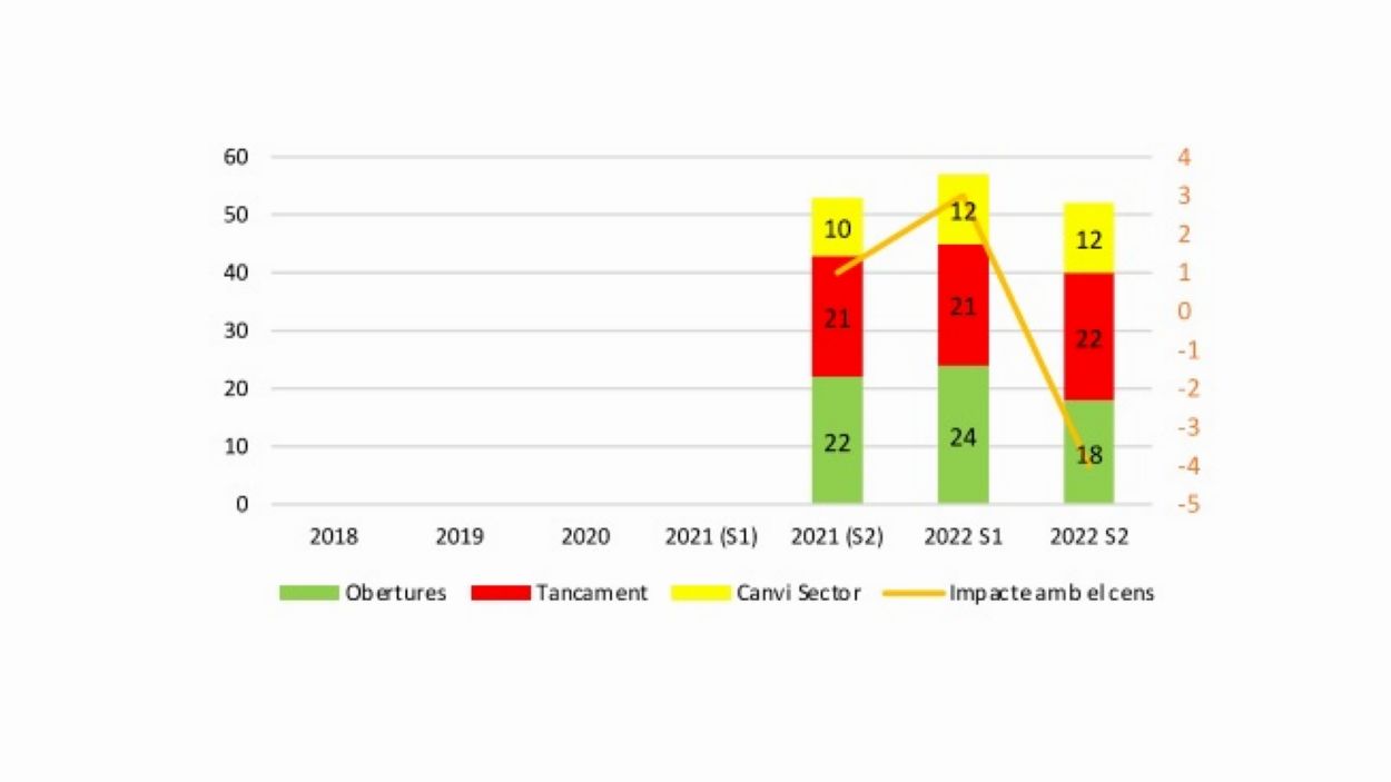Durant l’any 2022 s’han registrat 109 canvis de sector o situació en l’activitat comercial. Sant Cugat mostra, com s’observa als gràfics, un comportament estable, tant pel que fa al volum general de rotació (tancaments, obertures i canvi de sector) com de la confiança inversora.