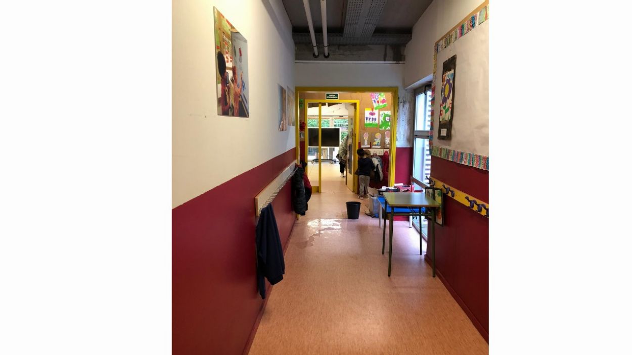 Tot i que l’escola ha obert aquest dimarts, les goteres afecten zones de pas / Cedides per l’AFI