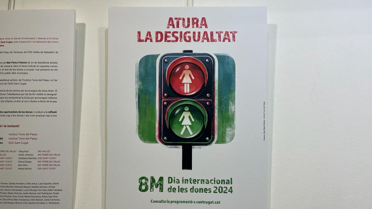 L’Ajuntament i l’Escola Municipal d’Art i Disseny de Sant Cugat han entregat aquest dilluns els premis del concurs de cartells del 8-M. Mar Pérez s’ha posicionat en el primer lloc amb el cartell “Atura la desigualtat”, que ha donat imatge a la campanya institucional del consistori. L’objectiu del certamen, adreçat a alumnes de cicles formatius i de batxillerat artístic de tot el Vallès Occidental, és reivindicar el dret de les dones a ocupar i estar presents en tots els espais del municipi.