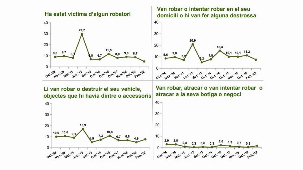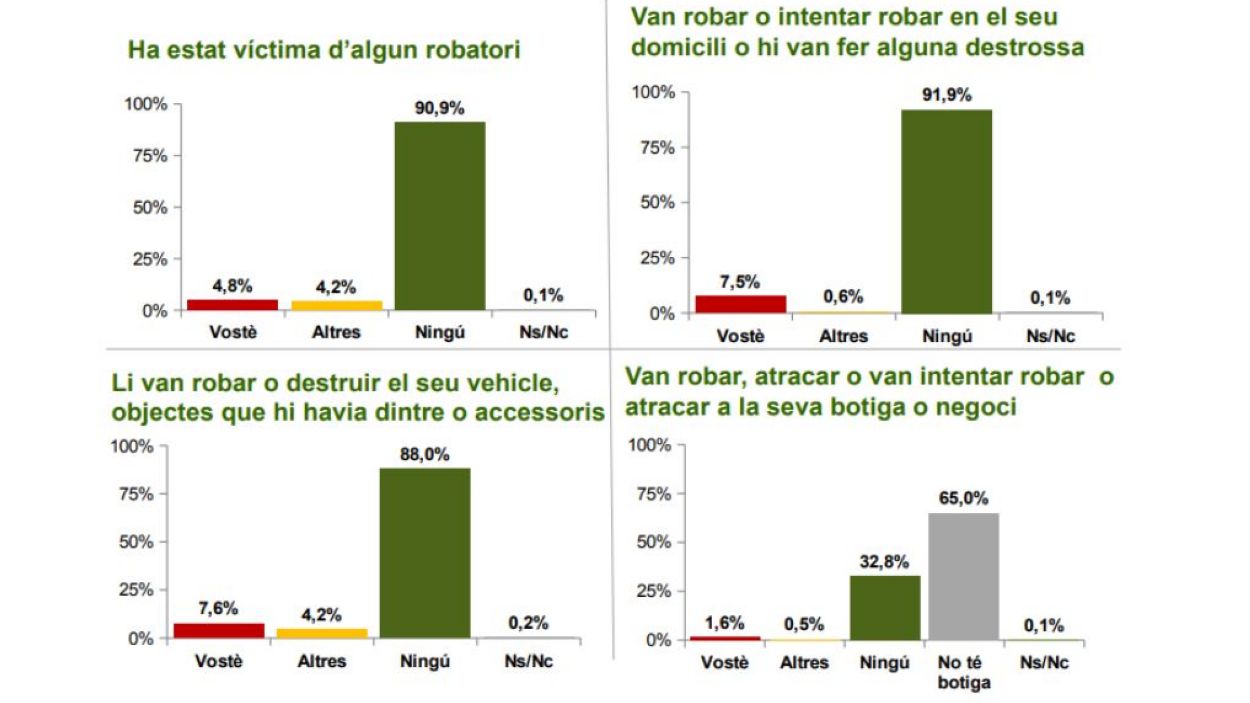 I és que són pocs els santcugatencs que diuen haver patit o conèixer algú que ha patit algun fet delictiu. Segons l’Observatori, el més habitual són els robatoris de vehicle o a interior de vehicle (11,8%), seguit de robatori a persones (9%) i robatoris a domicilis (8,1%). Respostes / Ajuntament
