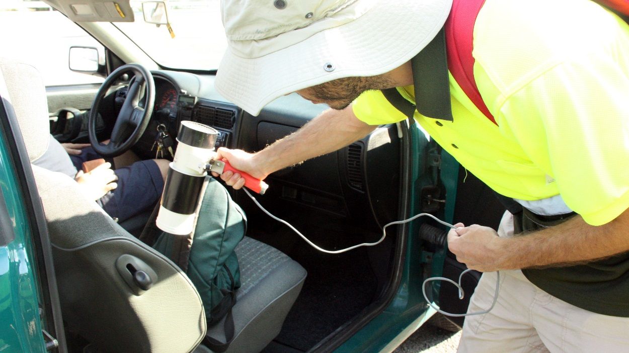 Un investigador del CREAF passant un aspirador pels seients d’un cotxe a la recerca de mosquits tigre / ACN (Mar Martí)