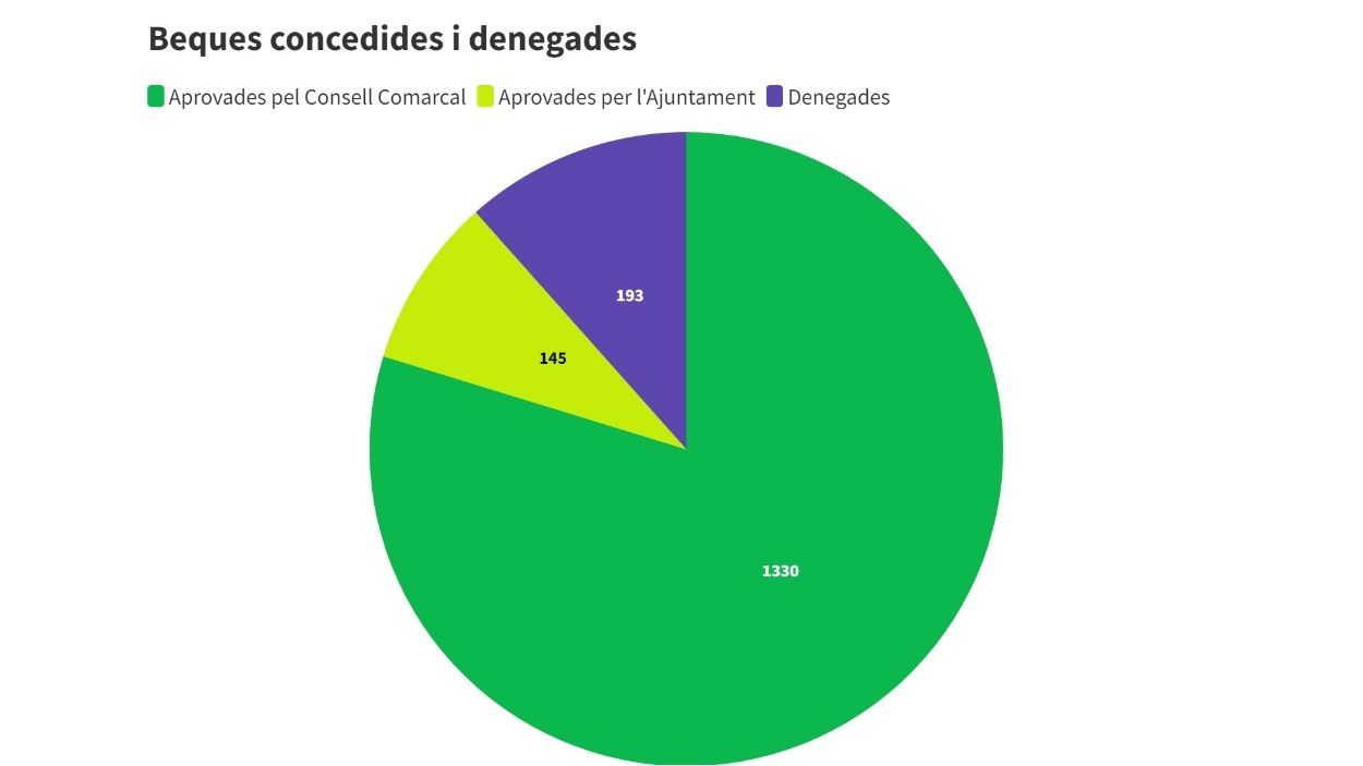 Només comptant els 1.330 ajuts del Consell Comarcal, el curs passat es van lliurar 156 més que durant el períodes 2020-2021, el que suposa un increment del 13,3%. És un creixement més pronunciat que el de la mitjana comarcal, on es van concedir un 8,6% més de beques comparant els dos períodes.
