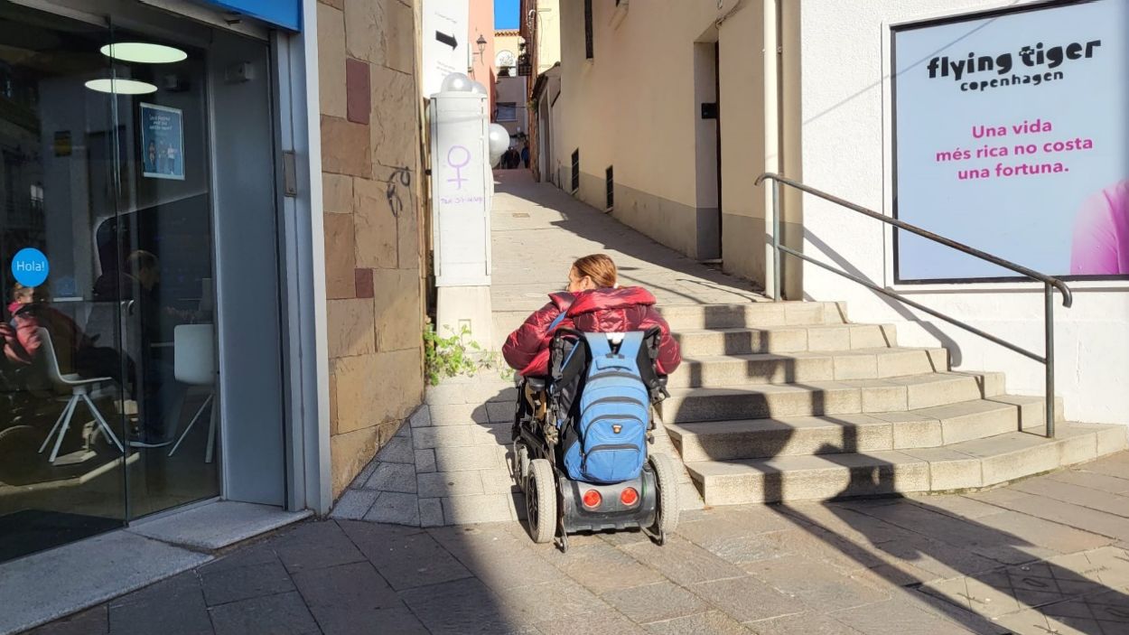 Una rampa massa inclinada, esglaons a les entrades dels comerços, escales mal senyalitzades, jardineres al mig del pas, manca de materials diferenciats a l’asfalt o pocs pictogrames en els cartells informatius, són només alguns dels exemples que les persones amb algun tipus de discapacitat, física o cognitiva, es troben en el seu dia a dia a les ciutats. Tot plegat dificulta la seva mobilitat i fa que sortir de passeig o a comprar sigui una carrera d’obstacles. En motiu del Dia Internacional de les persones amb Discapacitat, Cugat Mèdia ha acompayat un grup de santcugatencs a fer un passeig pel municipi que ha servit per evidenciar aquests problemes urbanístics amb l’objectiu de millorar-los.