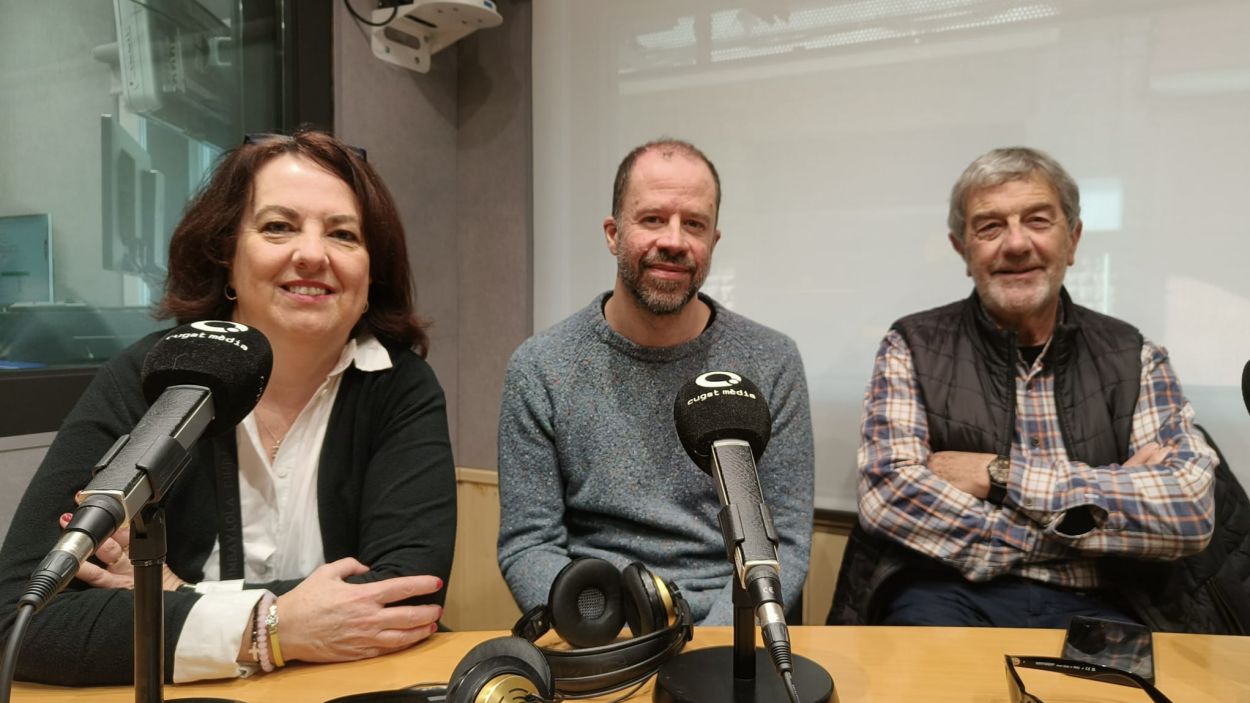 D’esquerra a dreta: Lluís Espín, Dani Vilaró i Àlvar Roda a l’estudi Ramon Barnils de Ràdio Sant Cugat / Cugat Mèdia