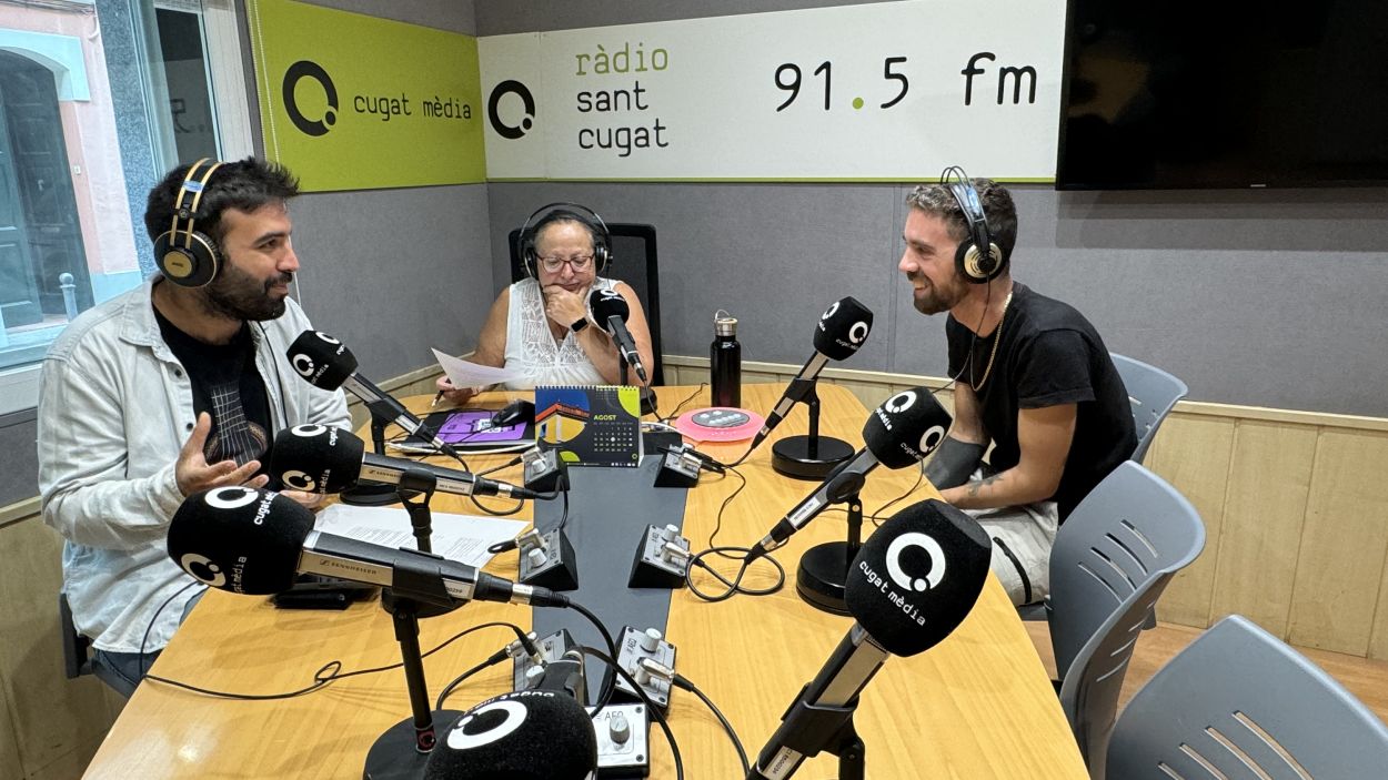 De dreta a esquerra: Martí Gonzàlez, Carme Reverte i Rai Benet, als estudis de Cugat Mèdia / Cugat Mèdia