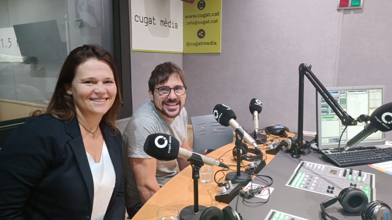 Àngels Jofré i Xavi Arbonès, membres de l’entitat Fem Lindy, als estudis de Ràdio Sant Cugat durant l’entrevista / Cugat Mèdia